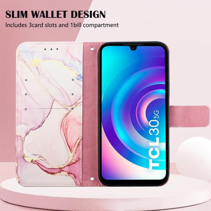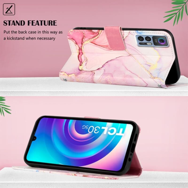 Θήκη τηλεφώνου από δέρμα με σχέδιο μάρμαρου για TCL 30 5G/30+ 5G PT003 (Ροζ Μωβ Χρυσό LS001)