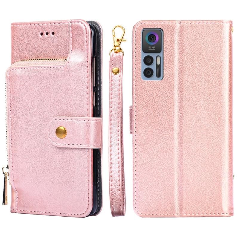 Για TCL 30 5G/30 + 5G φερμουάρ τσάντα δερμάτινη θήκη τηλεφώνου (ροζ χρυσό)