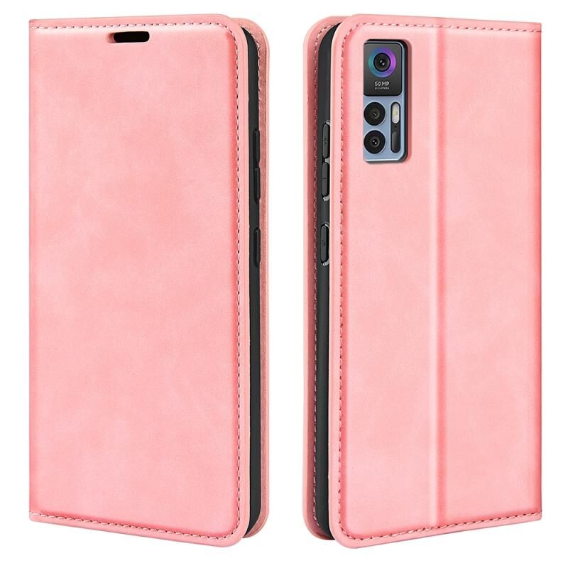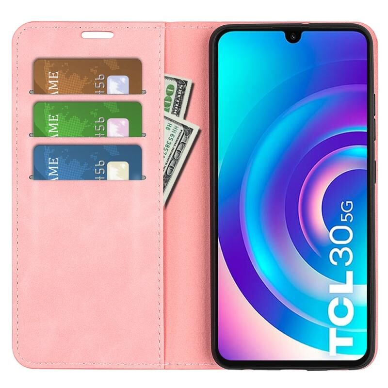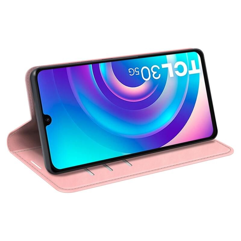 Θήκη τηλεφώνου από δέρμα με μαγνητική αναδίπλωση σε ρετρό στυλ για TCL 30 5G / 30+ (Ροζ)