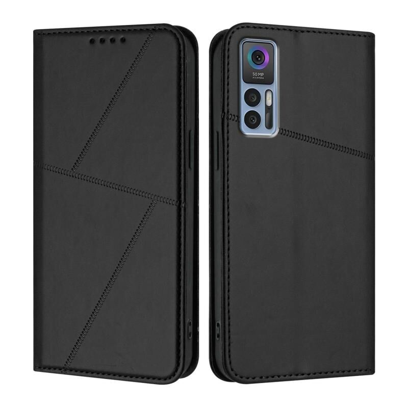 For TCL 30 5G / TCL 30+ Strong Magnetic Frosted Flip Leather Phone Case(Black)