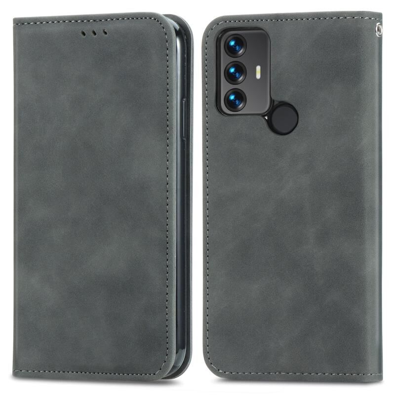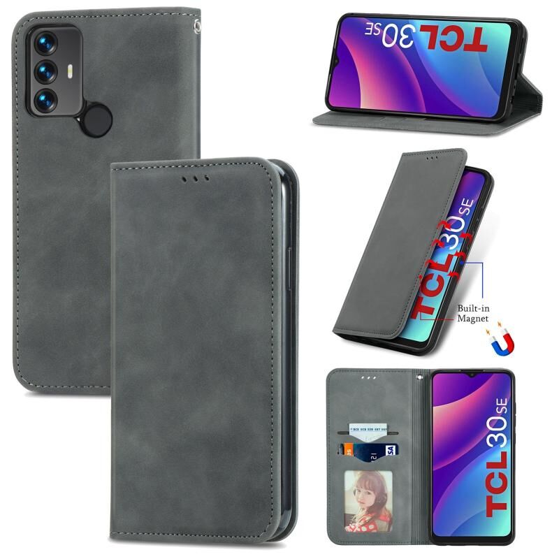 Για το TCL 30 SE Retro δέρμα αίσθηση μαγνητική οριζόντια Flip δέρμα τηλέφωνο υπόθεση (γκρι)