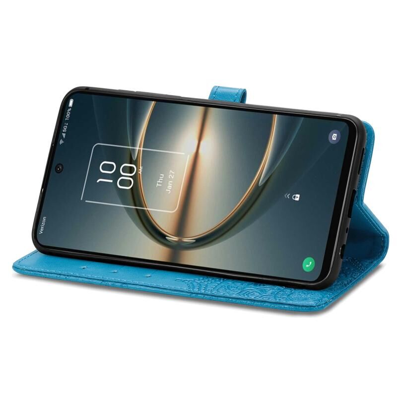 Για TCL 30 V 5G Mandala λουλούδι ανάγλυφο ανάγλυφο Flip δερμάτινη θήκη τηλεφώνου (μπλε)