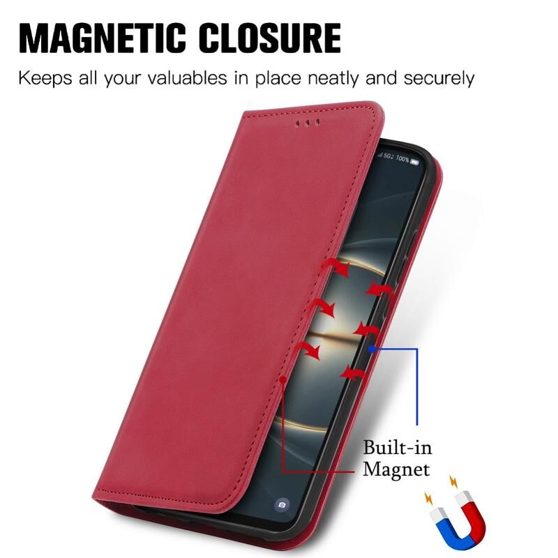 Για TCL 30 V 5G Retro δέρμα αίσθηση μαγνητική οριζόντια Flip δέρμα τηλέφωνο υπόθεση (κόκκινο)