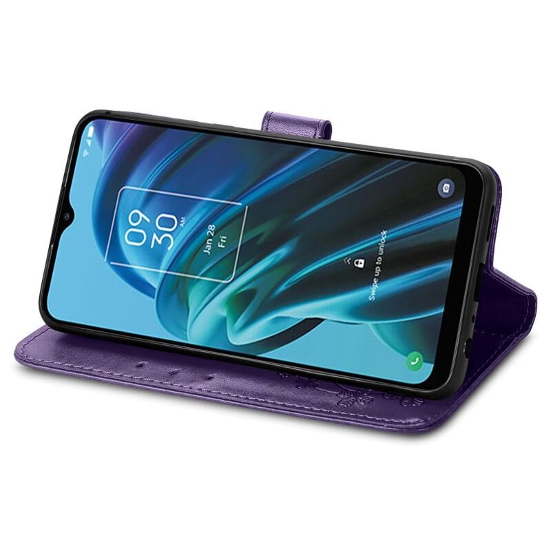 Για TCL 30 XE 5G τετράφυλλο κούμπωμα ανάγλυφο αγκράφα δερμάτινη θήκη τηλεφώνου (μωβ)