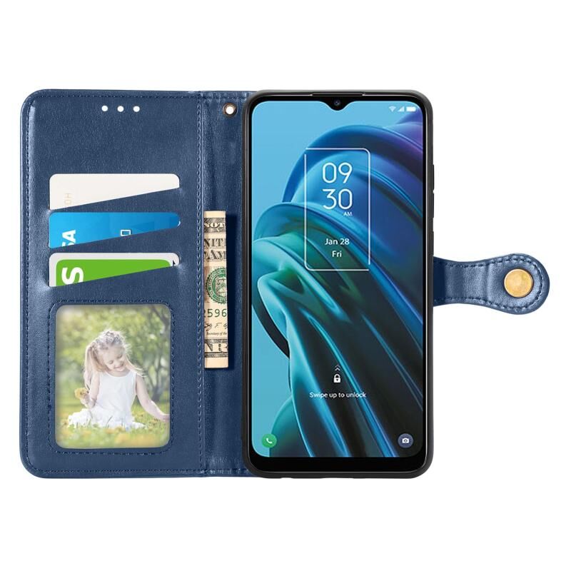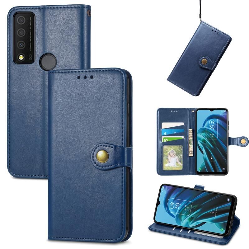 Για TCL 30 XE 5G Ρετρό στερεό χρώμα πόρπη δερμάτινη θήκη τηλεφώνου (μπλε)