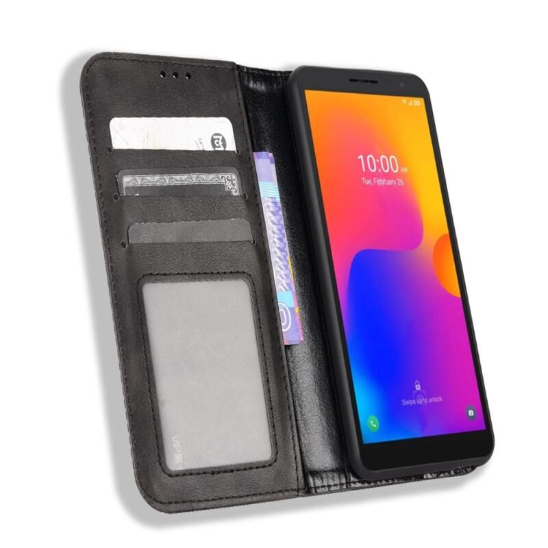 Για TCL 303 / Alcatel 1B 2022 Μαγνητική πόρπη Ρετρό τρελό άλογο δερμάτινη θήκη τηλεφώνου (μαύρο)