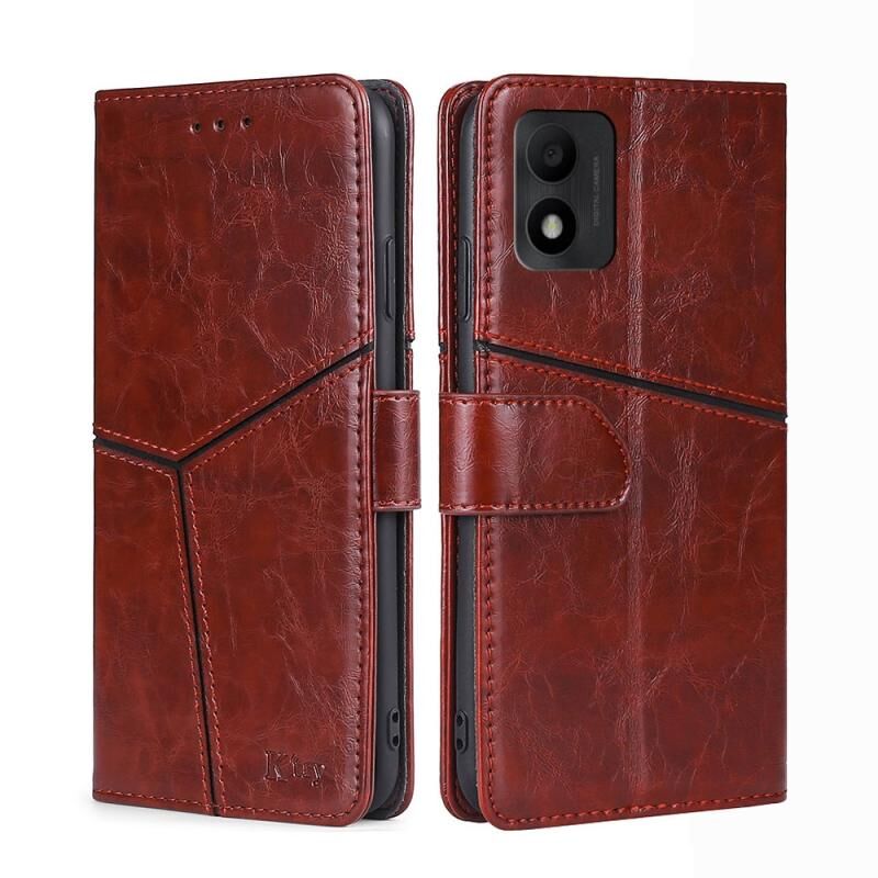 Για TCL 303 γεωμετρική ραφή οριζόντια Flip υπόθεση τηλεφώνου δέρμα (σκούρο καφέ)