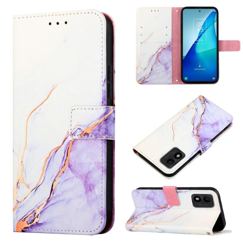 Θήκη τηλεφώνου TCL 303 PT003 από δέρμα με σχέδιο μάρμαρου και πτυσσόμενο καπάκι (Ροζ Μωβ Χρυσό LS001)