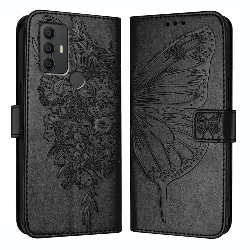 Θήκη τηλεφώνου από δέρμα με ανάγλυφο σχέδιο πεταλούδας για TCL 305 / 306 / 30 SE AL02 (Μαύρο)