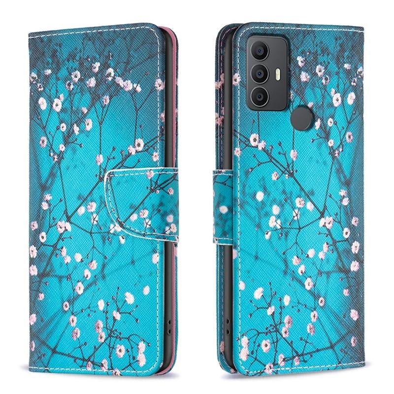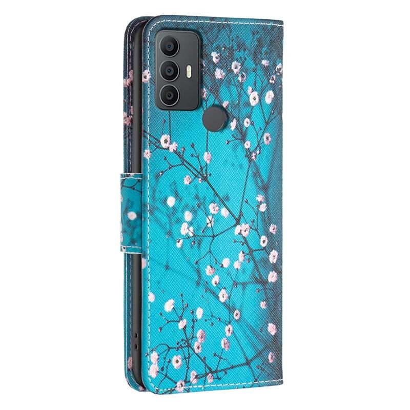 Θήκη τηλεφώνου από δέρμα με έγχρωμο σχέδιο για TCL 305 / 306 / 30 SE (Λουλούδι Δαμασκηνιάς)