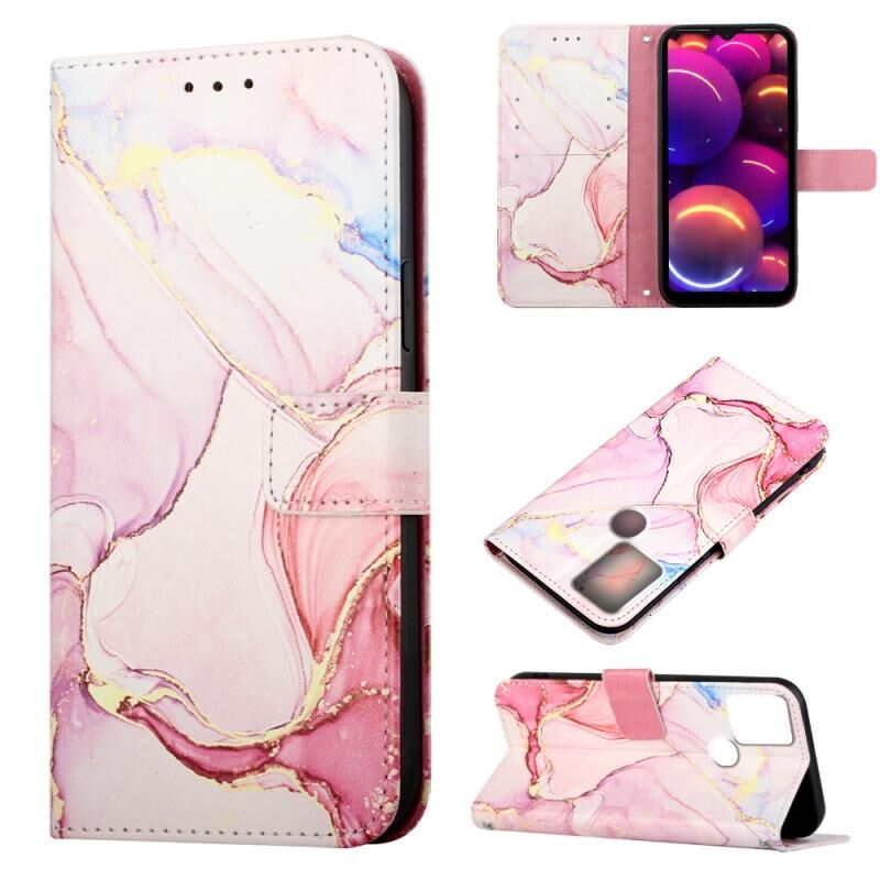Για TCL 305i Με Δακτυλικό Αποτύπωμα Θήκη Τηλεφώνου Δερμάτινη Αναδιπλούμενη με Σχέδιο Μαρμάρου PT003 (Ροζ Χρυσός LS005)