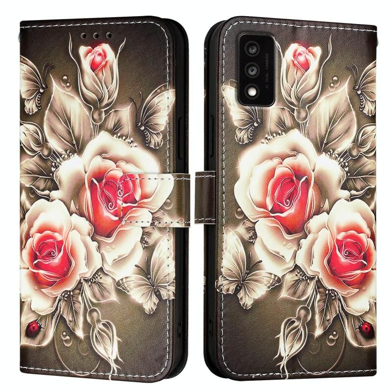 Θήκη τηλεφώνου από δέρμα με απλή ύφανση και πολύχρωμο σχέδιο για TCL 30T T603DL (Τριαντάφυλλα σε μαύρο φόντο)