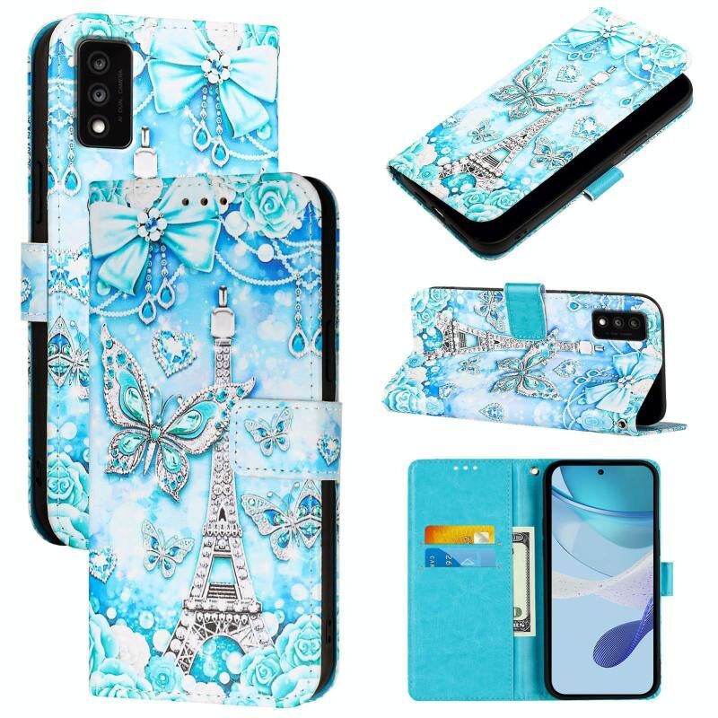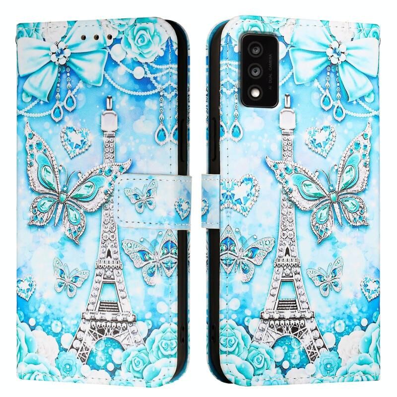 Θήκη τηλεφώνου από δέρμα με απλή ύφανση και πολύχρωμο σχέδιο (Tower Butterfly) για TCL 30T T603DL.