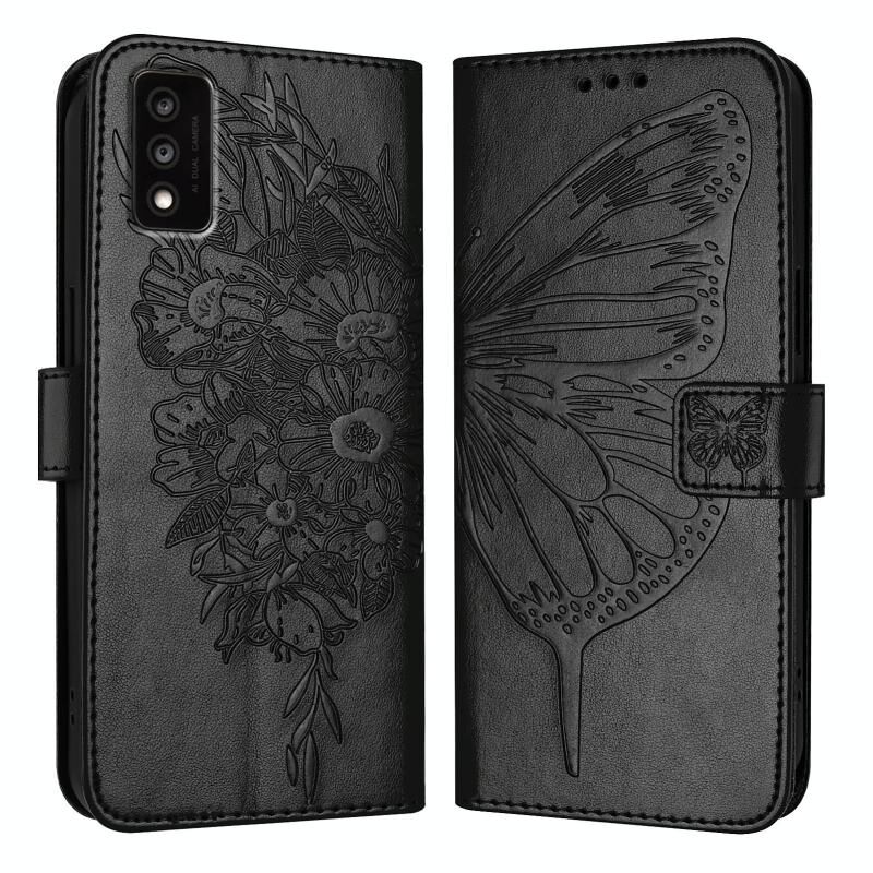 Θήκη τηλεφώνου δερμάτινη με ανάγλυφο σχέδιο πεταλούδας για TCL 30T T603DL (Μαύρο)