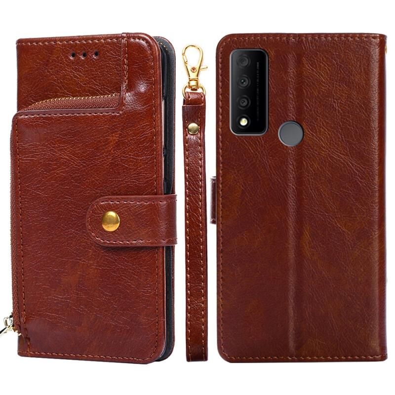 Για TCL 30V 5G φερμουάρ τσάντα δερμάτινη θήκη τηλεφώνου (καφέ)