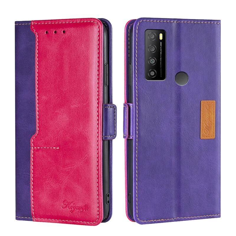 Για TCL 30XL 2022 Αντίθεση χρώμα πλευρά πόρπη δερμάτινη θήκη τηλεφώνου (μωβ + ροζ κόκκινο)
