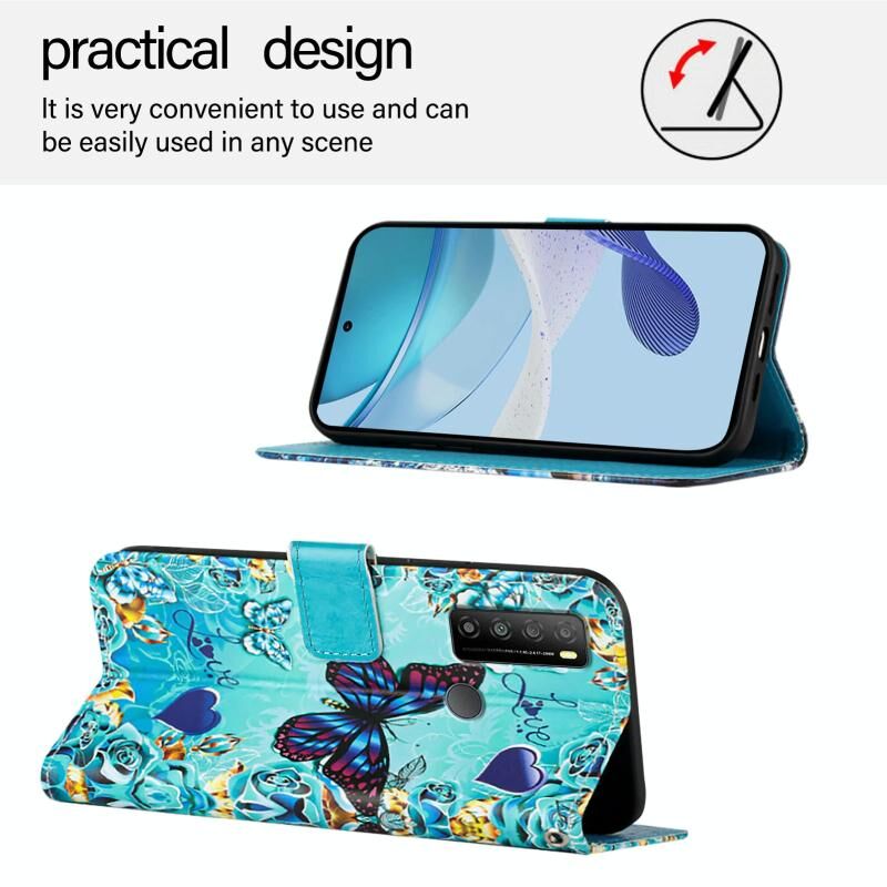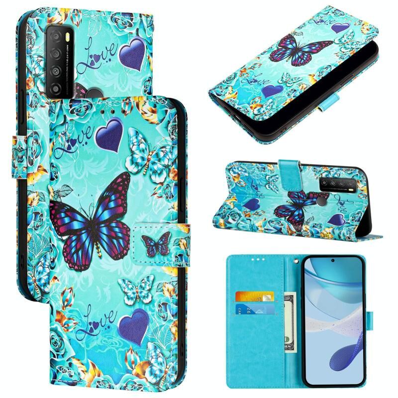 Θήκη τηλεφώνου από δέρμα με απλή ύφανση και σχέδιο πολύχρωμης ζωγραφικής για TCL 30Z T602DL (Αγάπη Πεταλούδα)