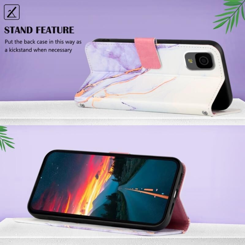 Θήκη τηλεφώνου από δέρμα με σχέδιο μάρμαρου για TCL 30Z T602DL PT003 (Ροζ Μωβ Χρυσό LS001)