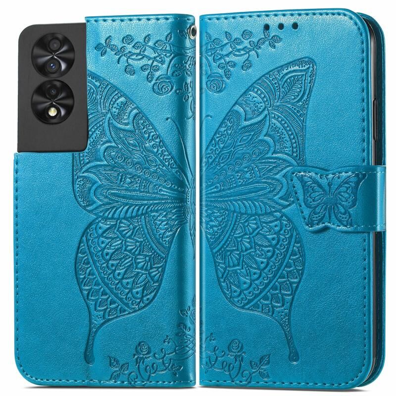 Θήκη τηλεφώνου από δέρμα με ανάγλυφο σχέδιο πεταλούδας και λουλουδιών TCL 40 NXTpaper 4G (Μπλε)