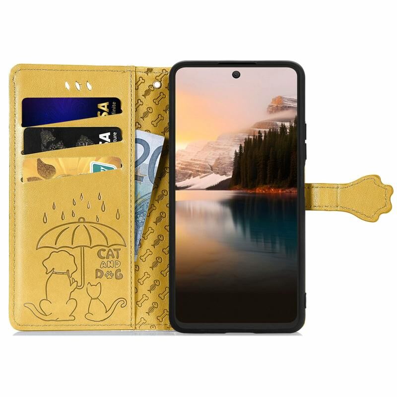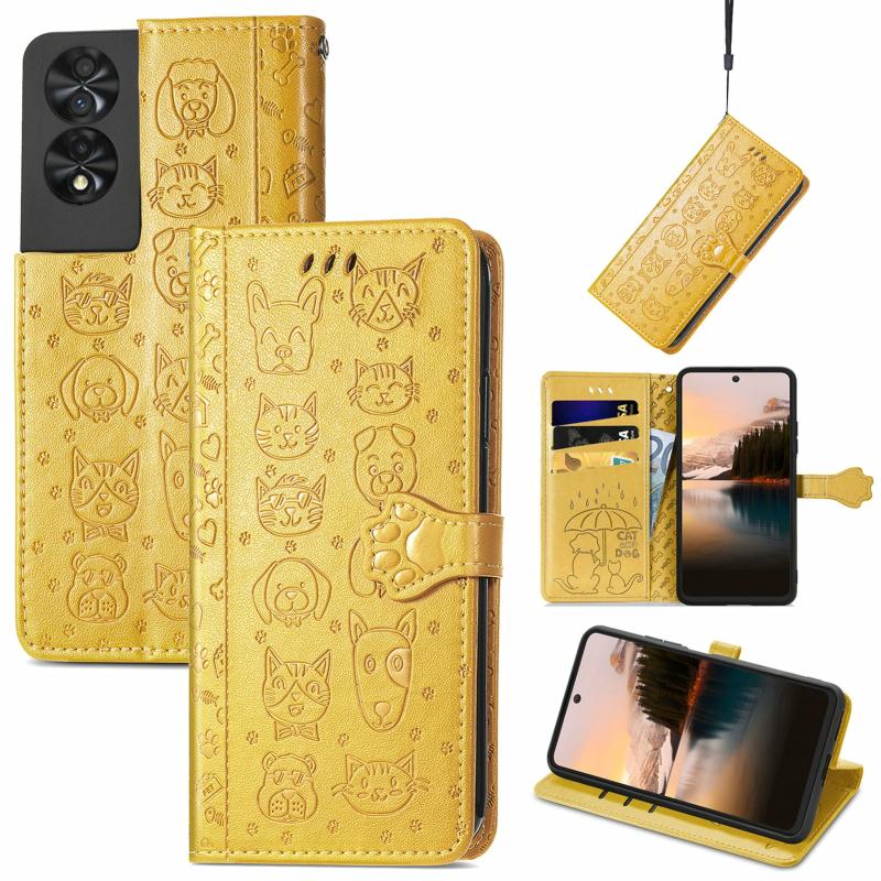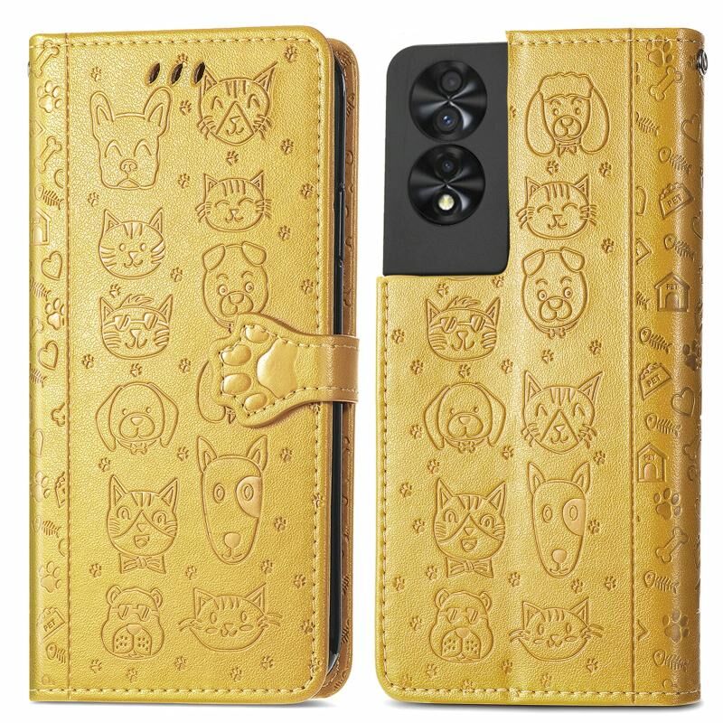 For TCL 40 NXTpaper 5G Cat and Dog Embossed Leather Phone Case(Yellow)