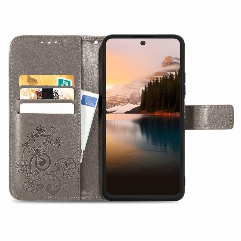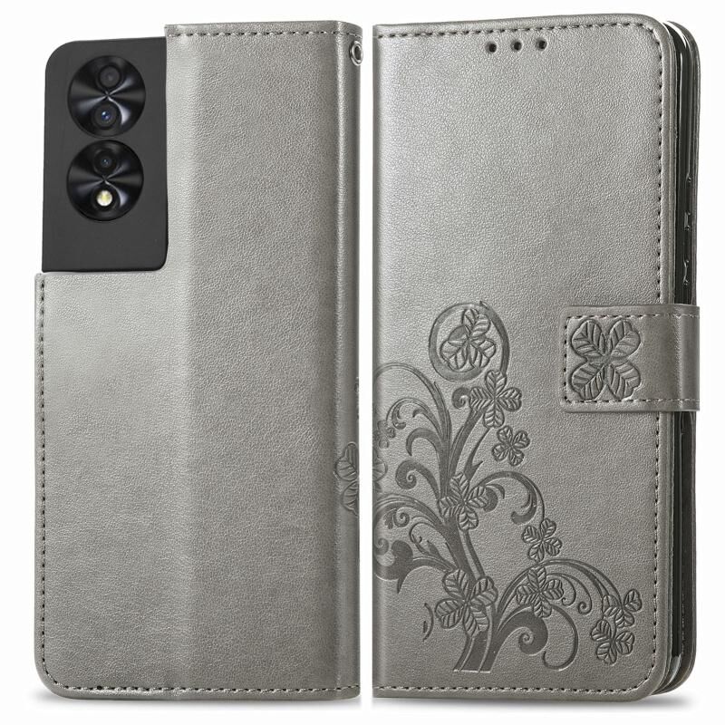 Για TCL 40 Nxtpaper τετράφυλλο κούμπωμα ανάγλυφο πόρπη δερμάτινη θήκη τηλεφώνου (γκρι)