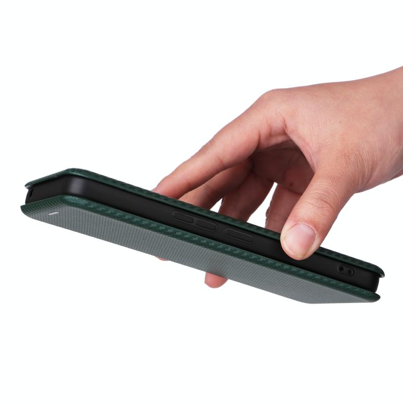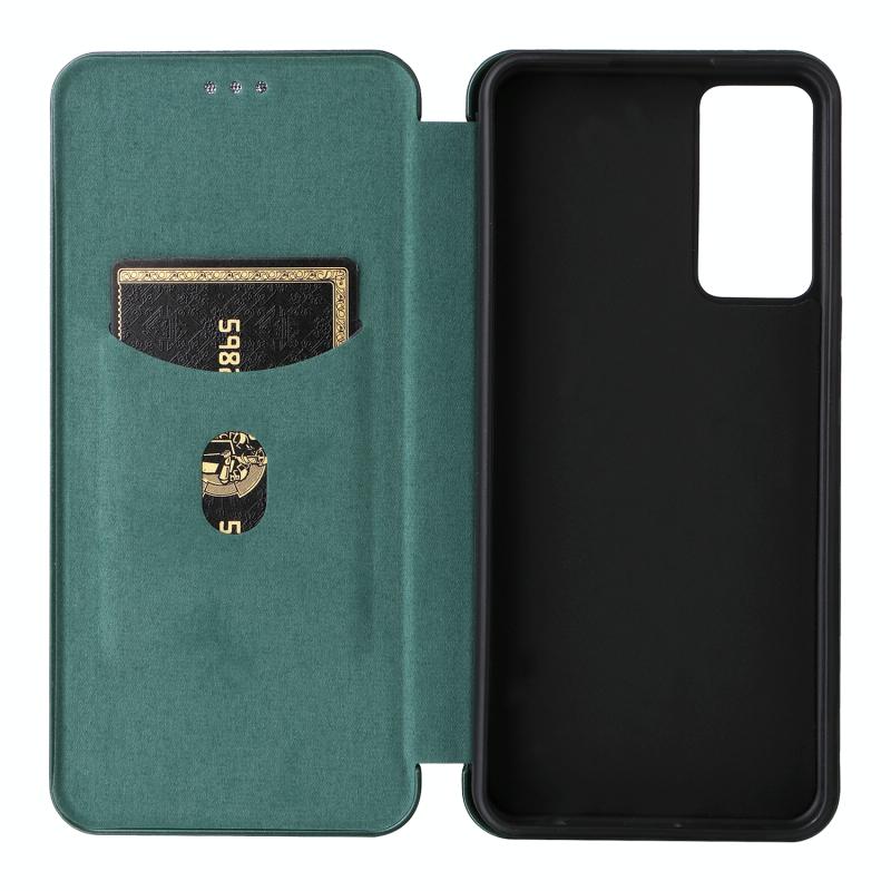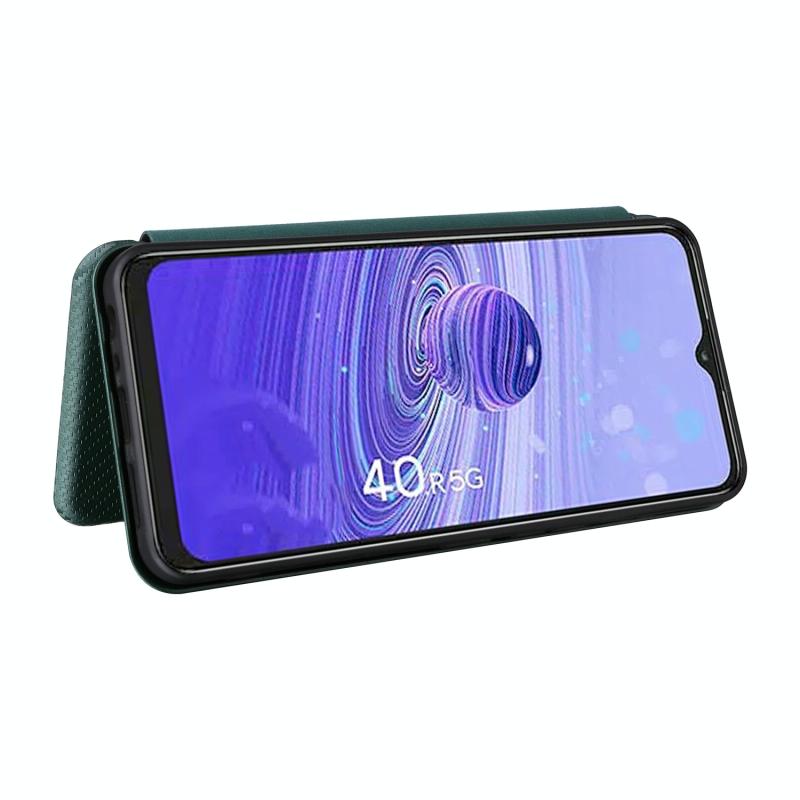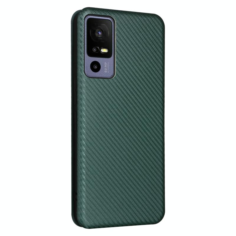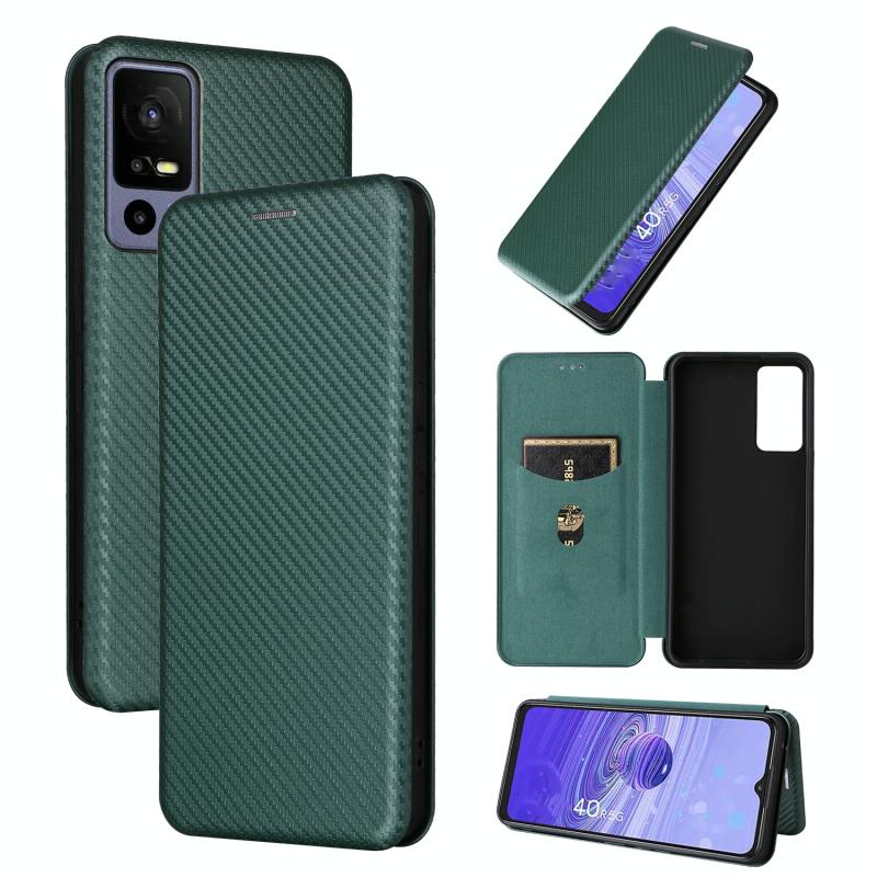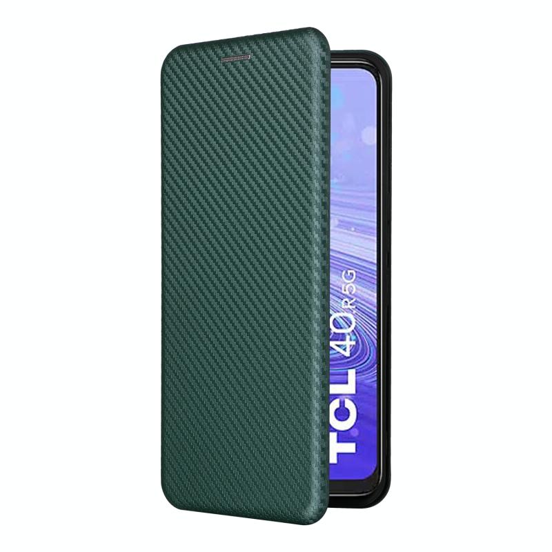 Θήκη τηλεφώνου από δέρμα με υφή ανθρακονημάτων για TCL 40 R 5G (Πράσινο)