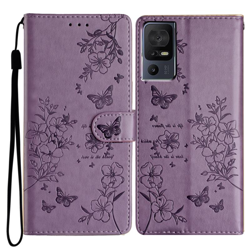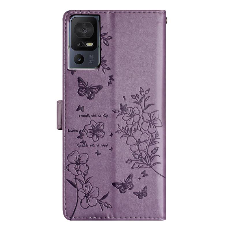 For TCL 40 SE Butterflies and Flowers Leather Phone Case(Purple)
