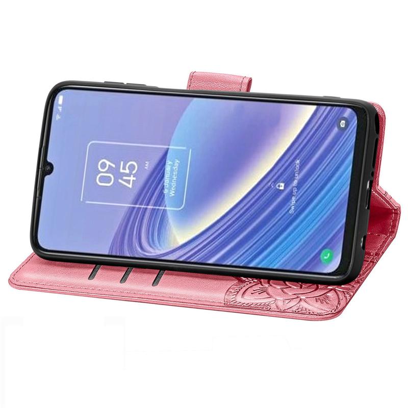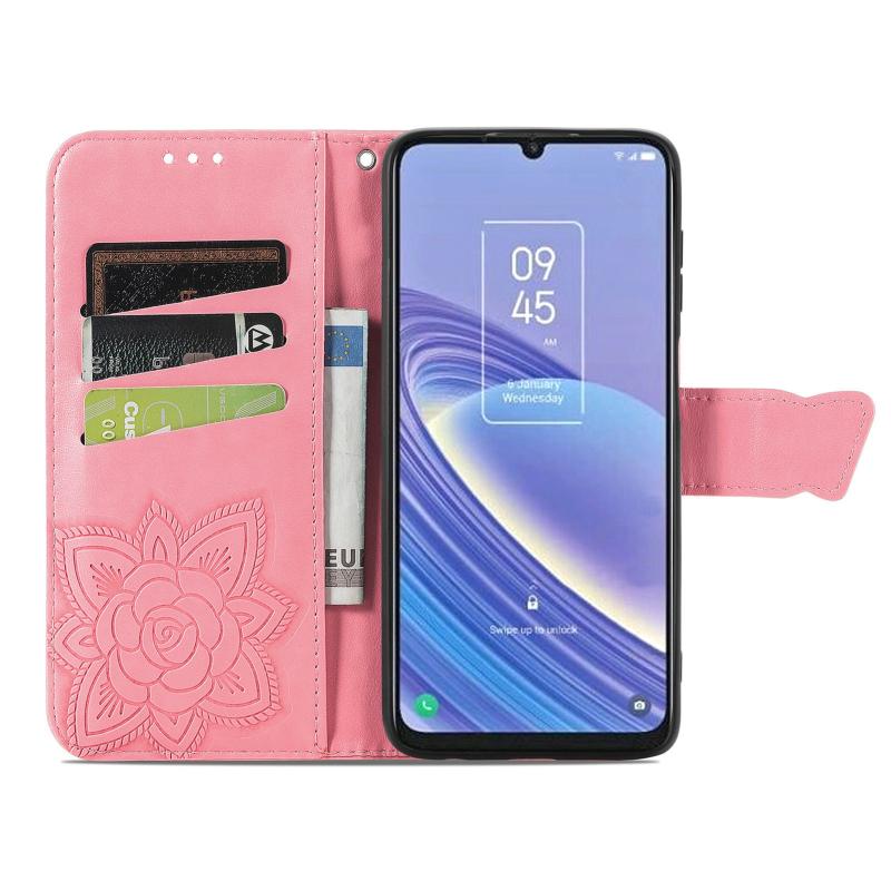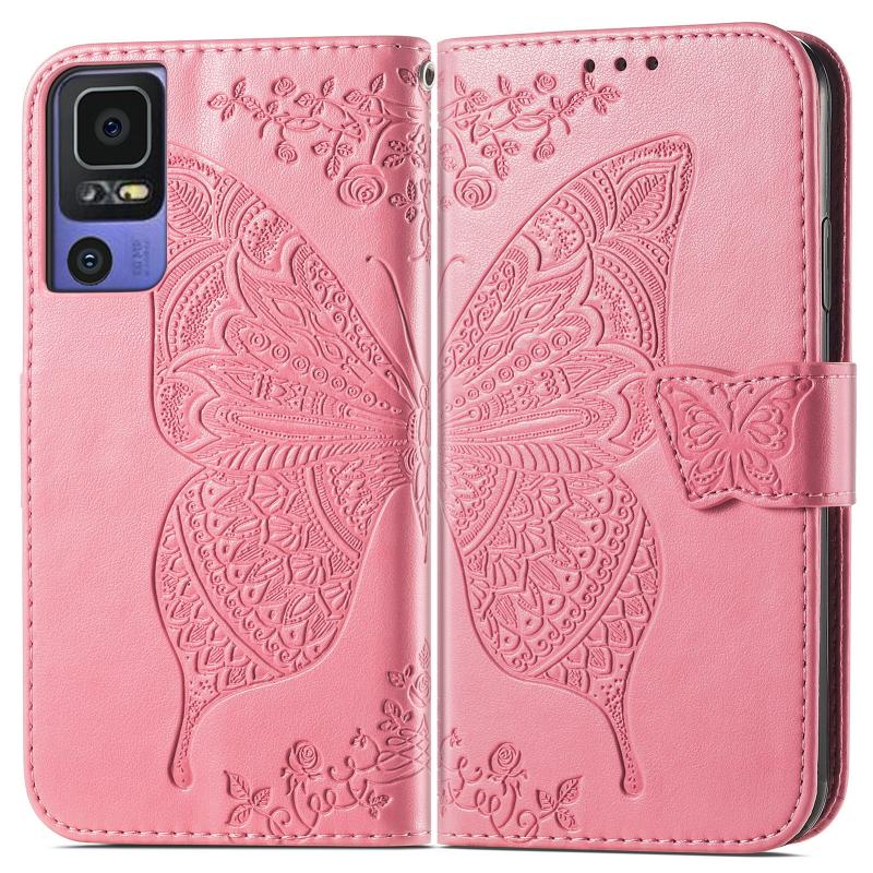 For TCL 40 SE Butterfly Love Flower Embossed Leather Phone Case(Pink)