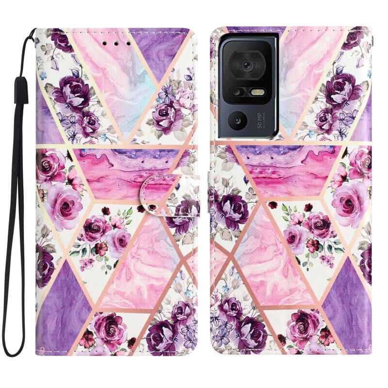Θήκη τηλεφώνου από δέρμα με σχέδιο για TCL 40 SE (Πράσινος Μάρμαρος)