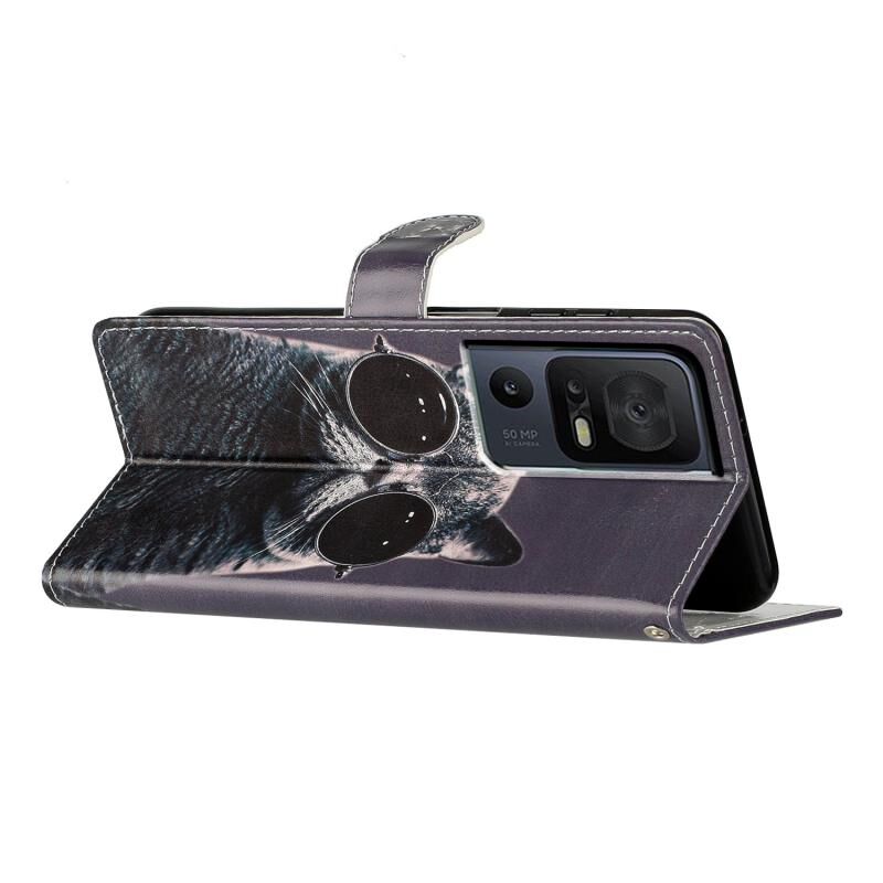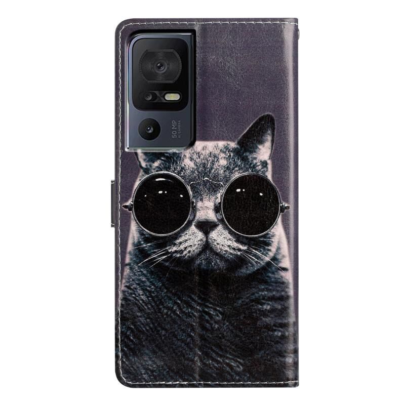 Θήκη τηλεφώνου από δέρμα με σχέδιο για TCL 40 SE (Γάτα με γυαλιά ηλίου) σε διάφορα χρώματα