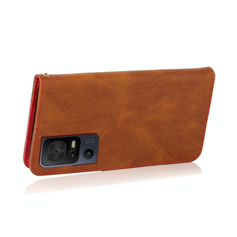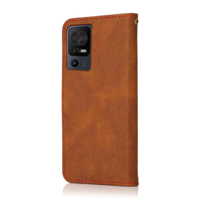 Θήκη τηλεφώνου από δέρμα με διπλή ραφή για TCL 40 SE (Καφέ Κόκκινο)