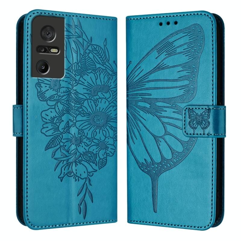 Θήκη τηλεφώνου δερμάτινη με ανάγλυφο σχέδιο πεταλούδας για TCL 40 SE (Μαύρο)
