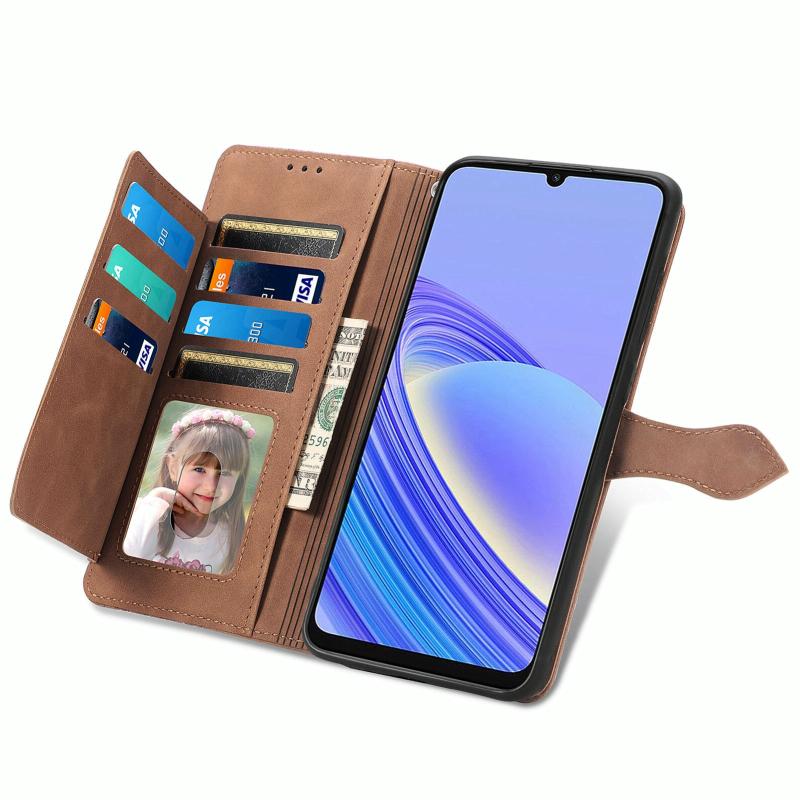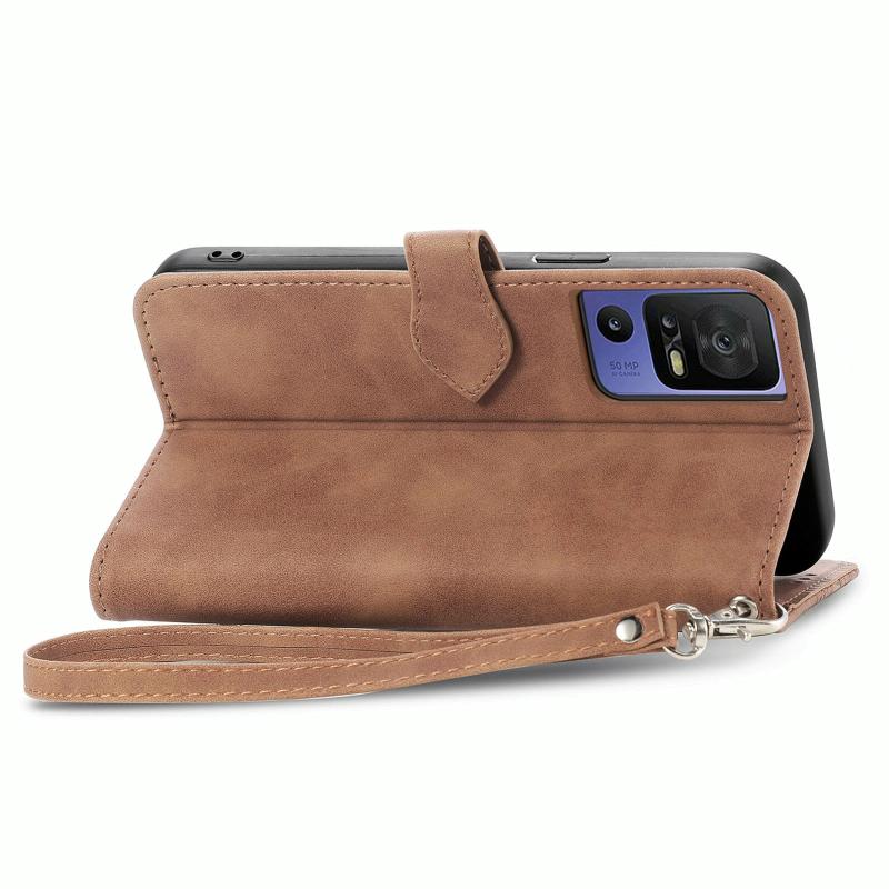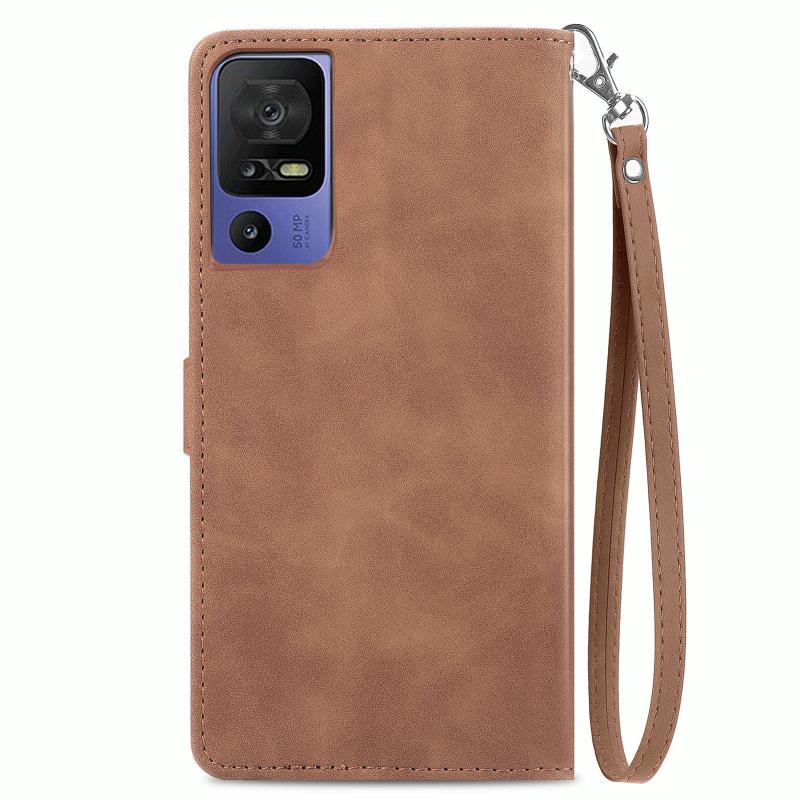 Θήκη τηλεφώνου δερμάτινη με φερμουάρ και ανάγλυφο λουλούδι για TCL 40 SE (Καφέ)