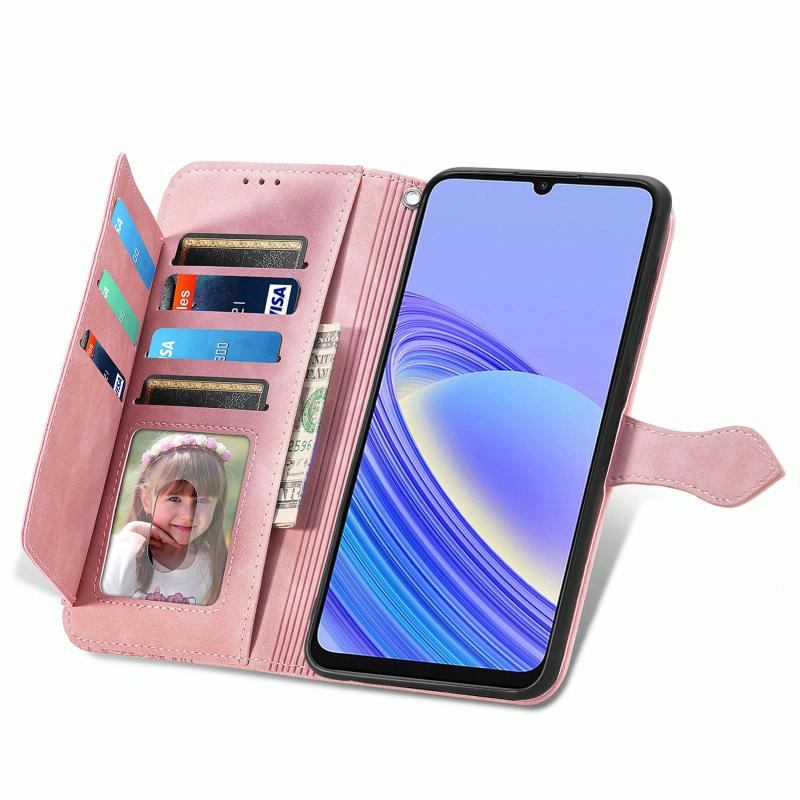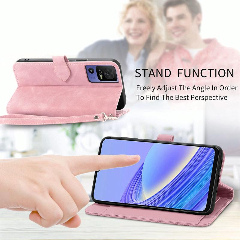 Θήκη τηλεφώνου δερμάτινη με φερμουάρ και ανάγλυφο λουλούδι για TCL 40 SE (Καφέ)