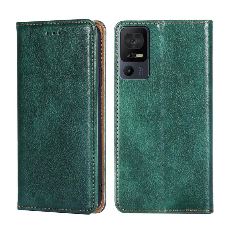Για TCL 40 SE Gloss Oil Solid Color Μαγνητική δερμάτινη θήκη τηλεφώνου (πράσινο)