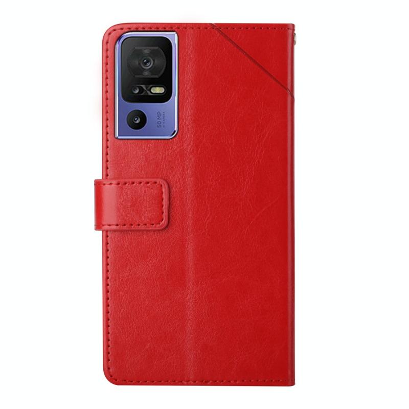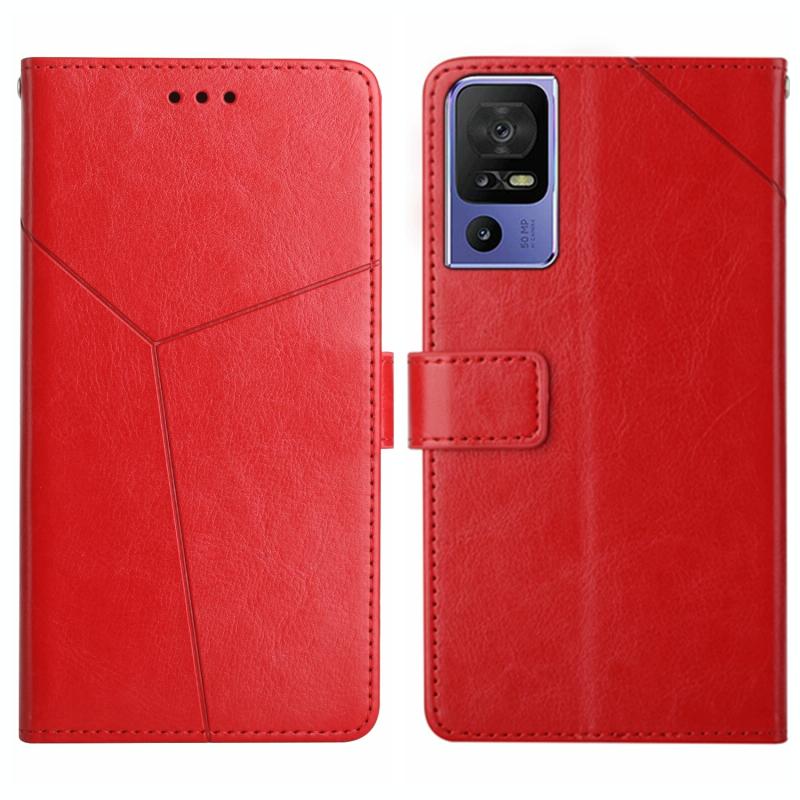 Θήκη τηλεφώνου δερμάτινη, τύπου βιβλίου, σε σχήμα Y για TCL 40 SE HT01 (Κόκκινη)