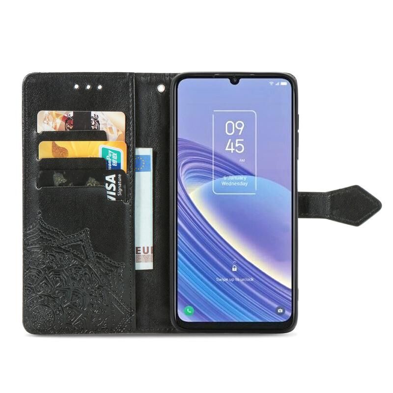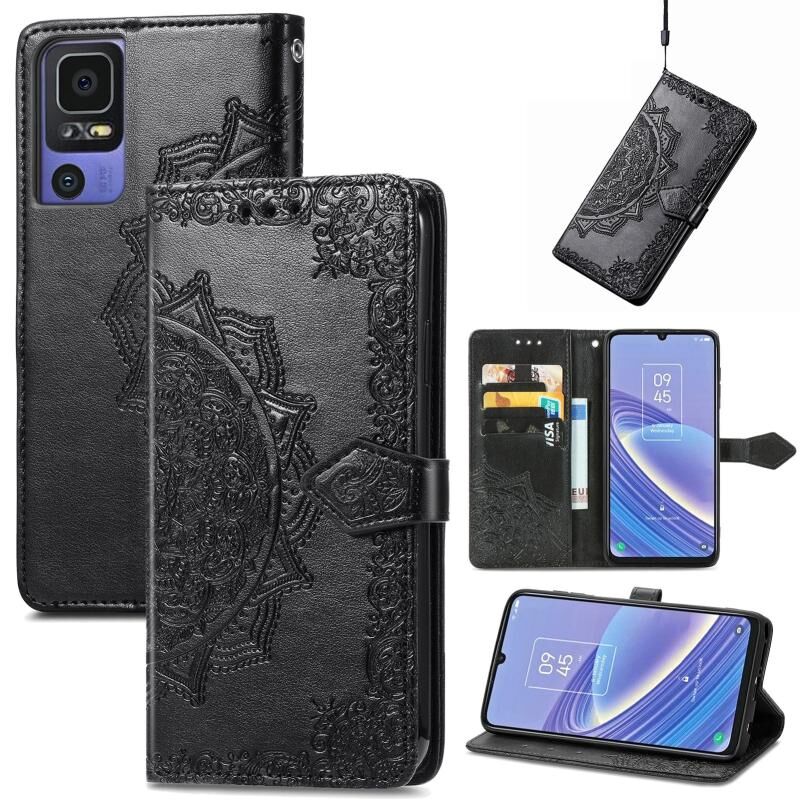 Για TCL 40 SE Mandala λουλούδι ανάγλυφο δερμάτινη θήκη τηλεφώνου (μαύρο)