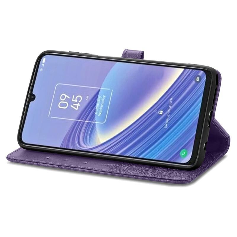 Για TCL 40 SE Mandala λουλούδι ανάγλυφο δερμάτινη θήκη τηλεφώνου (μωβ)