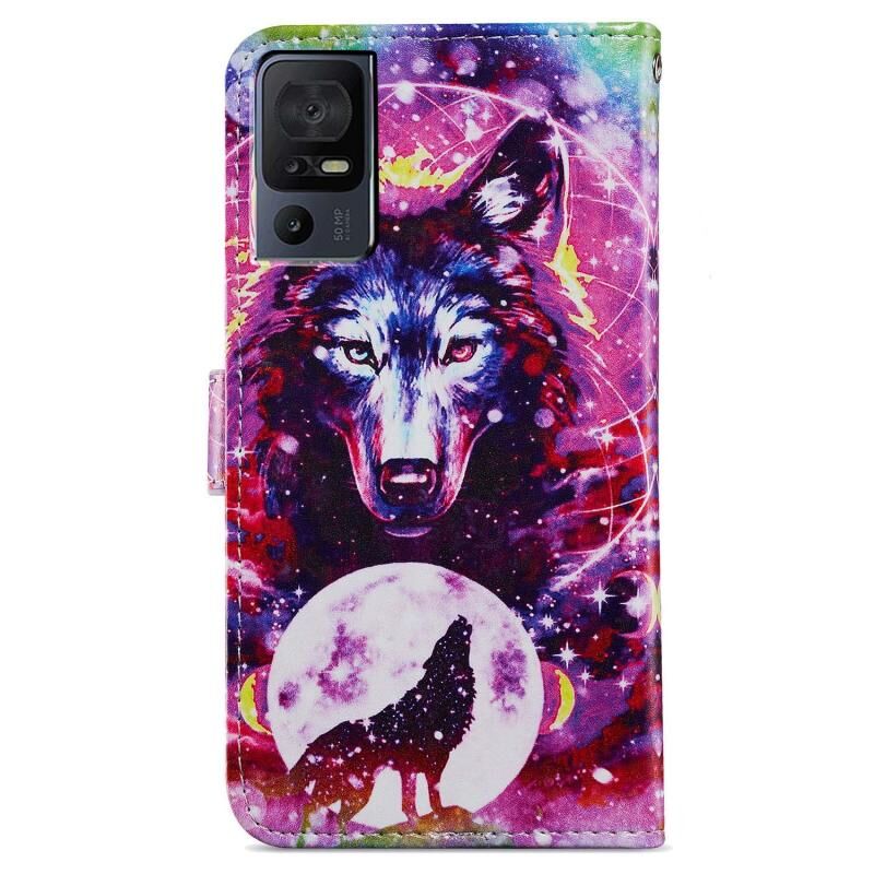 Θήκη τηλεφώνου από δέρμα με οριζόντιο άνοιγμα για TCL 40 SE με ζωγραφισμένο σχέδιο (Λύκος Τοτέμ)