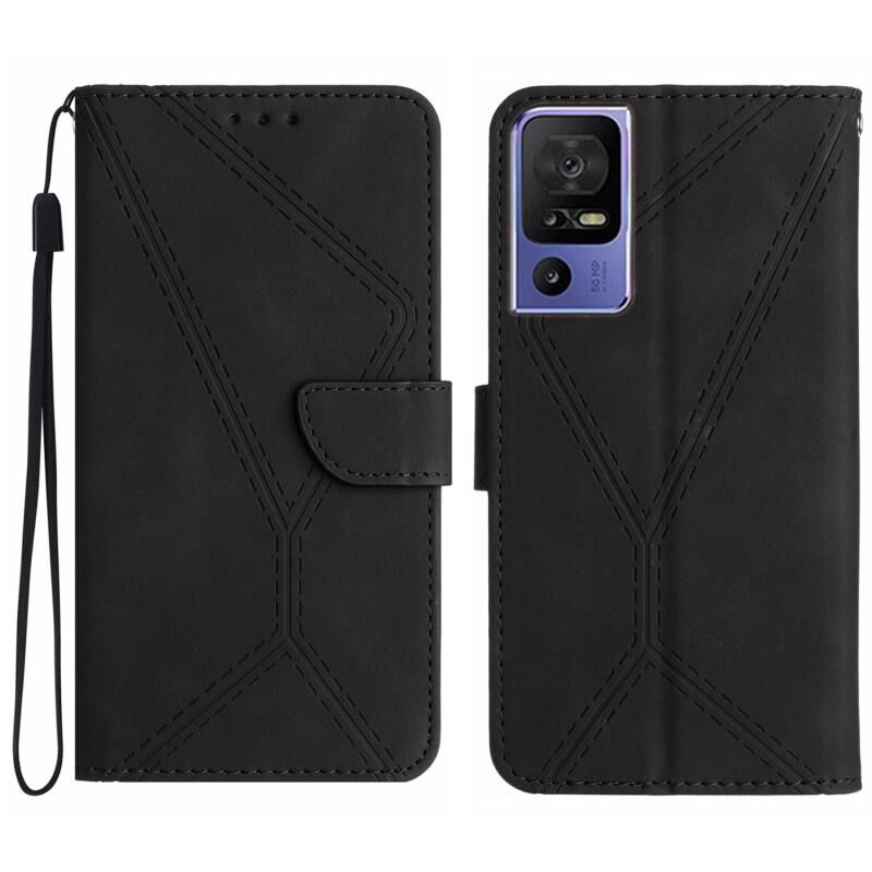 Για TCL 40 SE ραφή ανάγλυφη δερμάτινη θήκη τηλεφώνου (μαύρο)