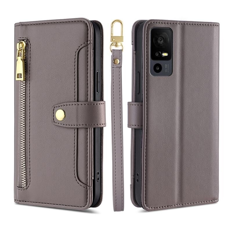 Για TCL 40 XE 5G / 40X 5G Lite Πρόβατο υφή Cross-body φερμουάρ πορτοφόλι δερμάτινη θήκη τηλεφώνου (γκρι)
