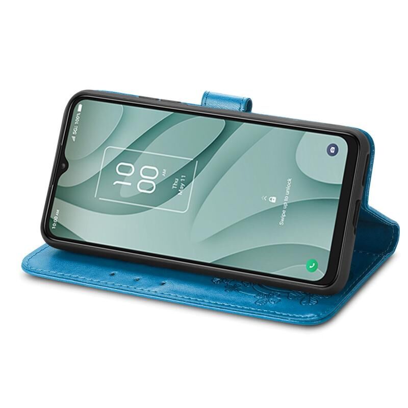 Για TCL 40 XE 5G τετράφυλλο κούμπωμα ανάγλυφο αγκράφα δερμάτινη θήκη τηλεφώνου (μπλε)