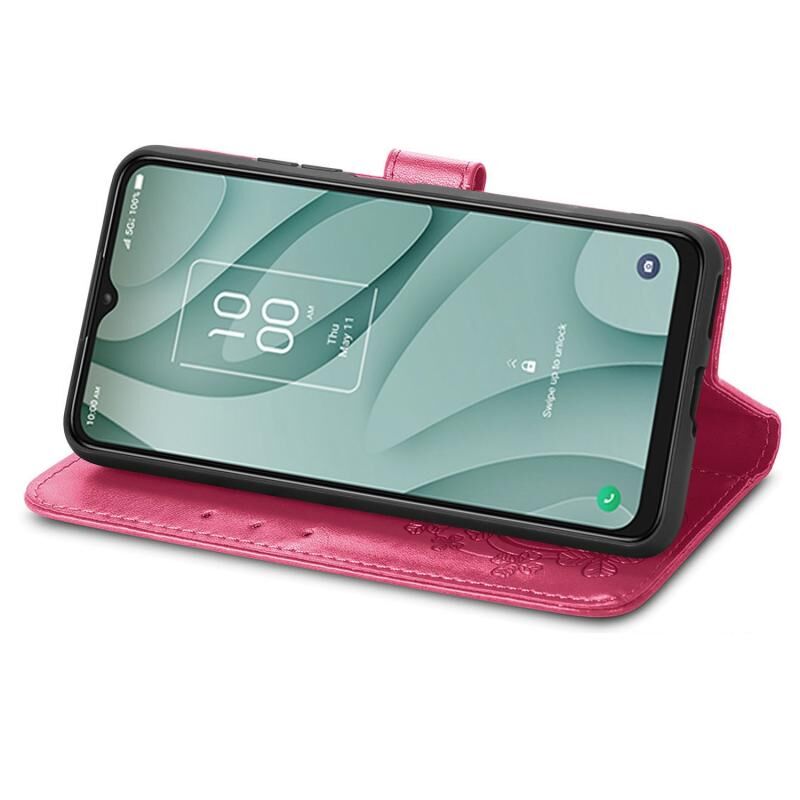 Για TCL 40 XE 5G τετράφυλλο κούμπωμα ανάγλυφο αγκράφα δερμάτινη θήκη τηλεφώνου (ματζέντα)