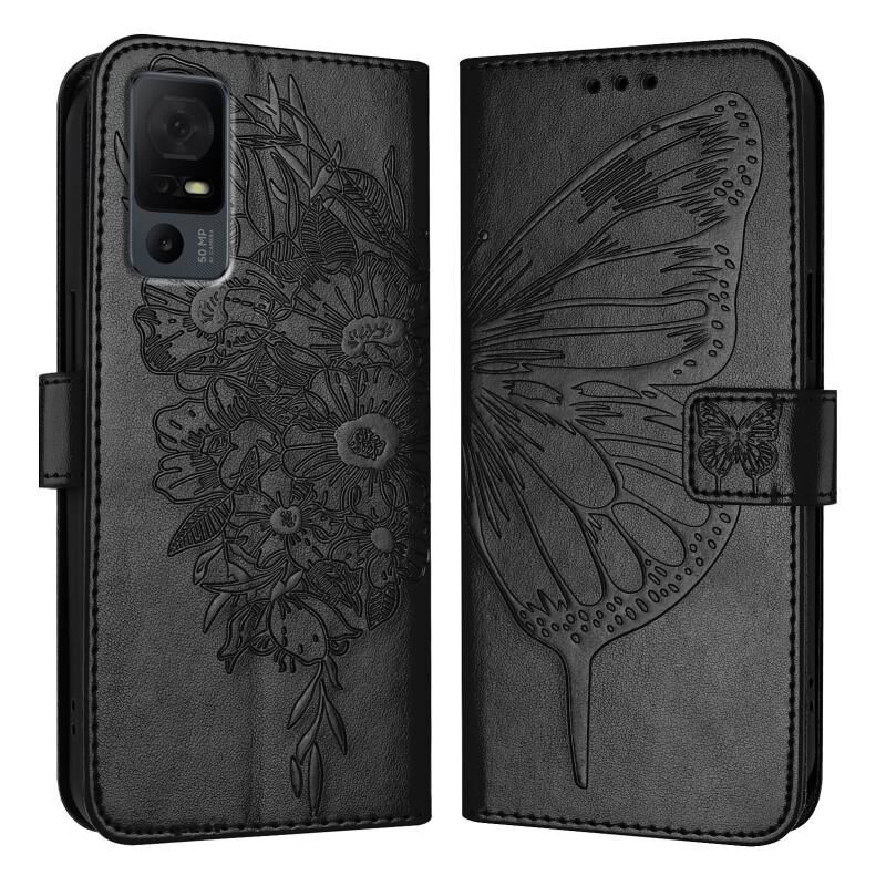 Θήκη τηλεφώνου από δέρμα με ανάγλυφο σχέδιο πεταλούδας για TCL 40 XL / 40 T T608DL (Μαύρο)