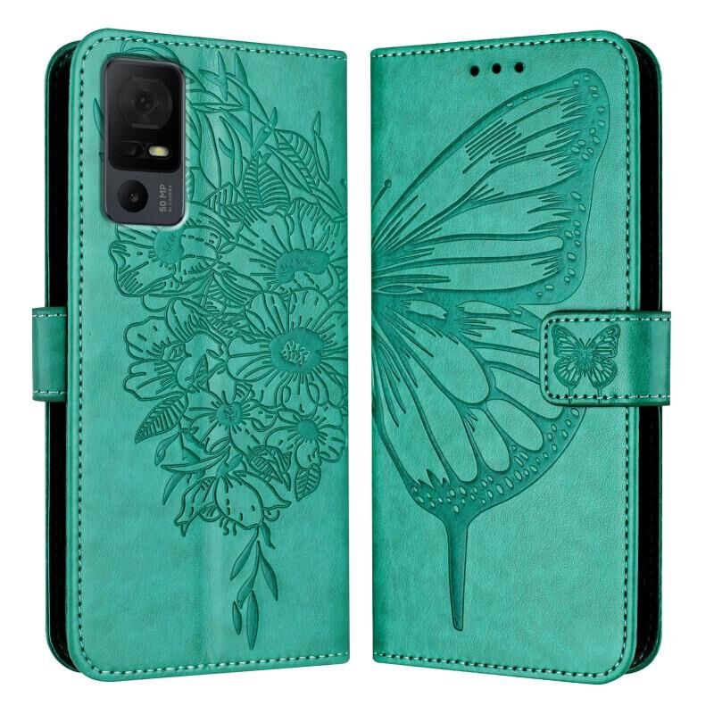 Θήκη τηλεφώνου από δέρμα με ανάγλυφο σχέδιο πεταλούδας για TCL 40 XL / 40 T T608DL (Πράσινο)