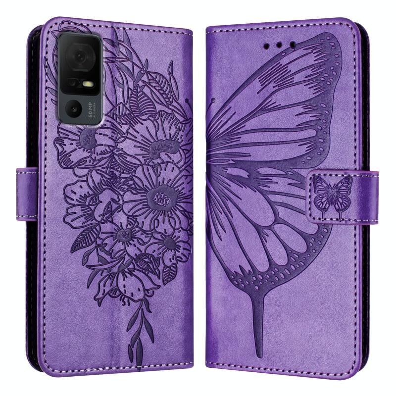 Θήκη τηλεφώνου από δέρμα με ανάγλυφο σχέδιο πεταλούδας για TCL 40 XL / 40 T T608DL (Πράσινο)