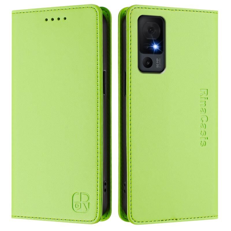 Θήκη τηλεφώνου δερμάτινη με μαγνητική απορρόφηση και λειτουργία RFID, διπλού τύπου, για TCL 40 XL / 40T / T608DL RC01 (Μέντας Πράσινο)