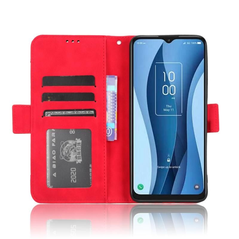 Για το TCL 40 XL δέρμα αίσθηση μοσχάρι υφή κάρτα υποδοχές δερμάτινη θήκη τηλεφώνου (κόκκινο)
