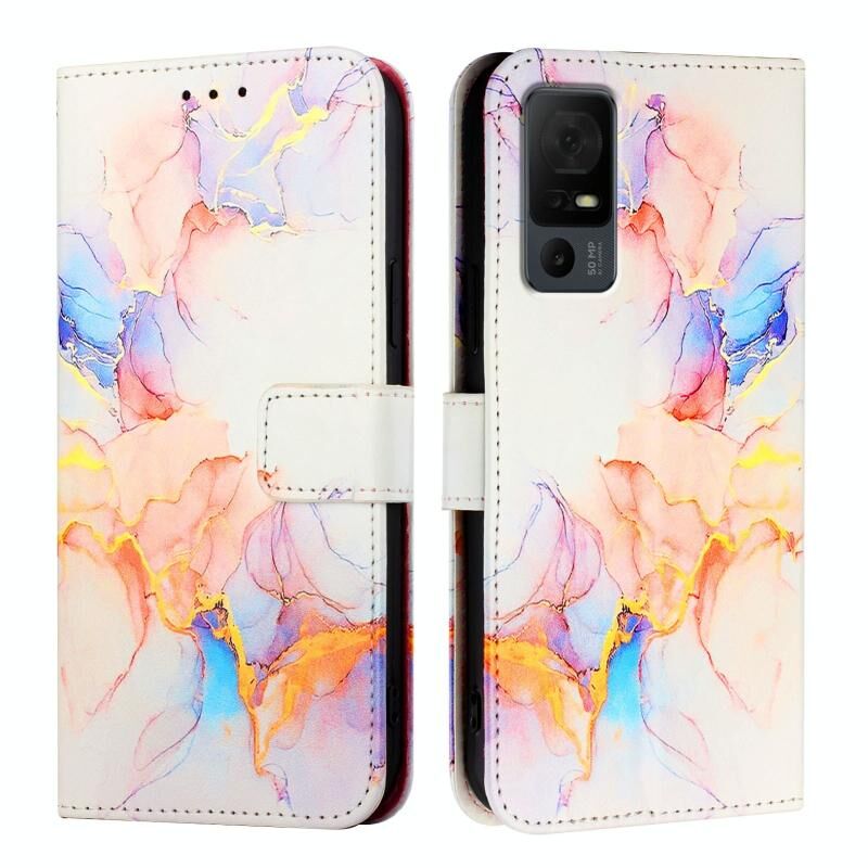 Θήκη τηλεφώνου από δέρμα με σχέδιο μάρμαρου για TCL 40 XL / TCL 40 T T608DL PT003 (Λευκό Γαλαξιακό Μάρμαρο)