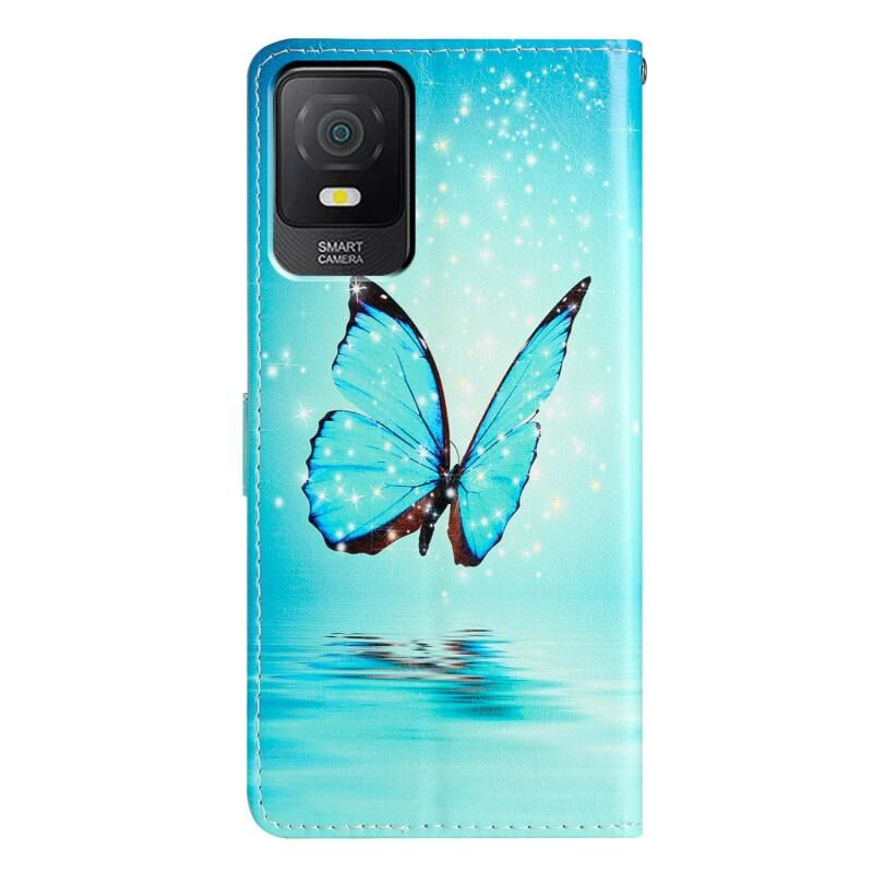 Θήκη τηλεφώνου δερμάτινη με σχέδιο για TCL 403 (Μπλε Πεταλούδα)